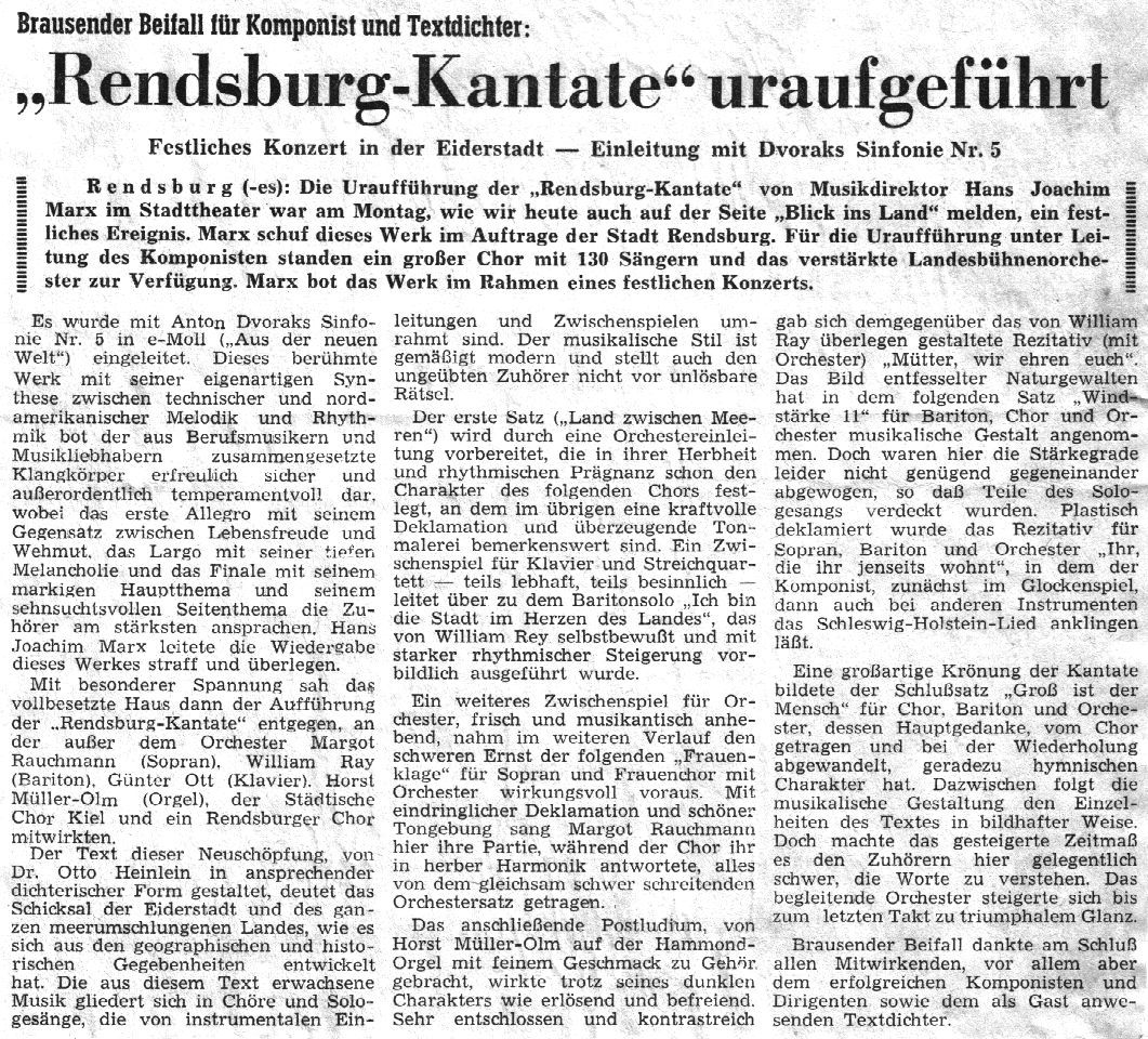 Zur Uraufführung der „Rendsburg-Kantate“ von Hans-Joachim Marx