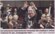 KIEL. Zunächst ist es nur ein Grundrauschen, eine magische Vorahnung der mächtigen, unfassbar vielgestaltigen Bewegung. Dann hebt das Wispern und Flirren ab, gebiert Tonwellen und Klangwogen. Der taiwanesisch-österreichische Komponist Shih hat dem Ozean und seinem Leben spendenden Plankton ein Stimmengewirr abgelauscht, dessen raumflutender Faszination sich am Sonntagmorgen im Kieler Schloss das begeistert lauschende Publikum bei der Uraufführung der „Klang-Installation“ Schweigendes Meer nicht entziehen kann. Die Ovationen für den anwesenden Komponisten krönen ein insgesamt stimmungsdichtes Konzert, das Generalmusikdirektor Georg Fritzsch zu Ehren des 350. Geburtstags der Christian-Albrechts-Universität und seiner Meeresforschung nah am Wasser konzipiert hat.